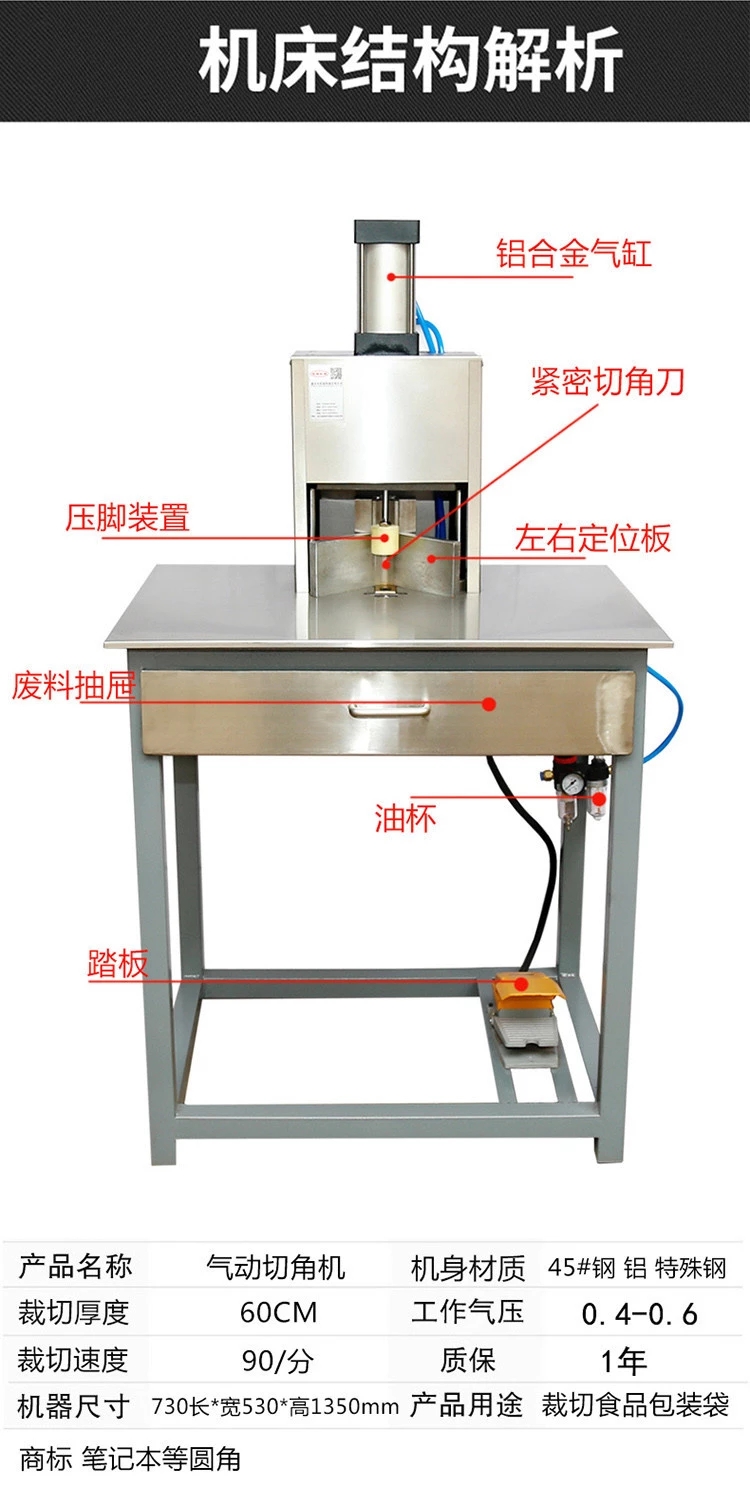 產(chǎn)品用途:裁切食品包裝袋,商標(biāo),筆記本等圓角