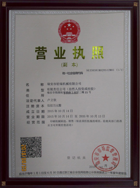 瑞安市輕瑞機(jī)械有限公司創(chuàng)建于90年代中期,是一家集產(chǎn)品設(shè)計(jì)、制造、銷售、服務(wù)于一體的企業(yè),專業(yè)生產(chǎn)印前印后及紙品深加工、輔助類設(shè)備。產(chǎn)品遠(yuǎn)銷國內(nèi)外,在市場上有較高的信譽(yù)與知名度,深受新老用戶信賴。
